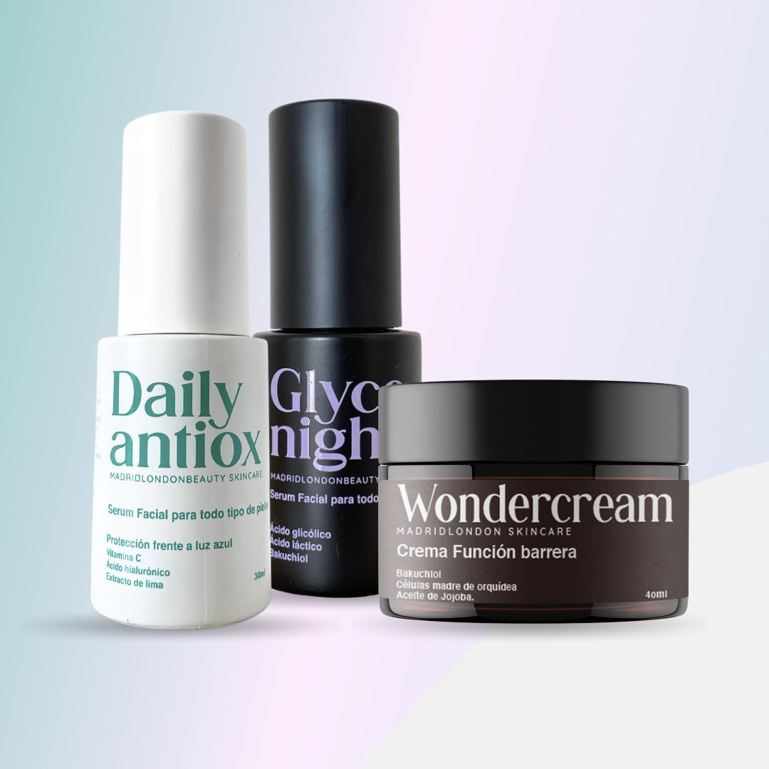 El tratamiento completo que tu piel necesita para lucir espléndida. Compuesto por la crema hidratante WonderCream, el sérum de día Daily Antiox y el serúm de noche Glyco Night, son la solución perfecta para aquellas personas que buscan mejorar la salud de su piel de manera eficaz y rápida.