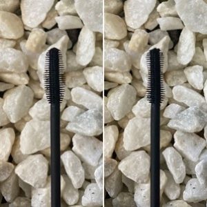 The goupillon is a cylindrical brush and does not draw too much product (a plus). It is not very wide so you can perfectly comb even the hairs closest to the tear trough and the lower lashes.
